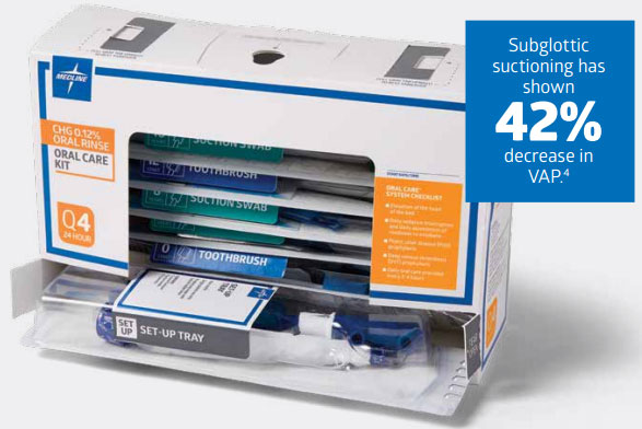 Ventilated patients are at the highest risk for infection and therefore require the most intensive oral care regimen. Based on industry guidelines, care should be administered on a Q2 or Q4 schedule to help reduce the risk factors associated with ventilator-associated pneumonia (VAP). 24hour oral care kits feature at-a-glance education on the packaging and are designed to dispense products one-at-a-time in the correct order to help drive compliance.