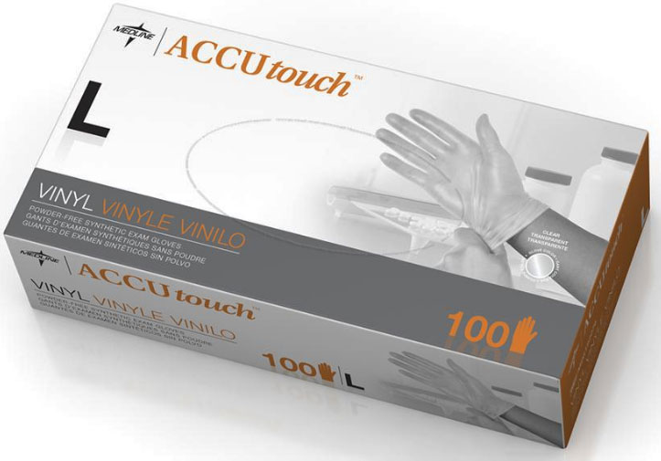 • Accutouch synthetic exam gloves are made of vinyl.