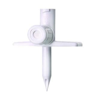 MINI-SPIKE IV Additive Dispensing Pin for preparing and dispensing diluent or additive from multidose rubber-stoppered vials. Utilizes a bacterial retentive air-venting filter. Proximal luer lock connector.