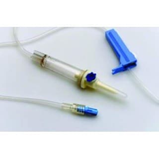 Non-DEHP Solution Set with DUO-VENT Spike, Luer Activated Valve, INTERLINK Injection Site, Male Luer Lock Adapter with Retractable Collar. Approximately 60 drops per mL, Approximate Length 92″ (2.3 m). Fluid path is sterile.