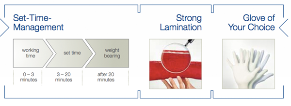 Ensures maximum lamination and end laydown for strong, long-lasting casts. The patented glove system provides a tack-free application.