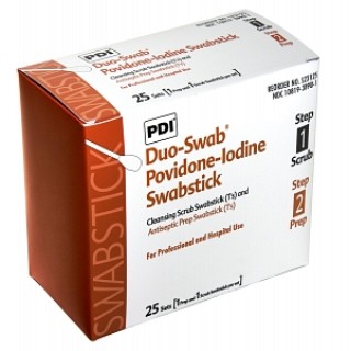 The ‘PVP IODINE DUO SWAB PREP SCRUB 1S 25BX 10BXCA – S23125’ is a pack of 250 individually packaged swabs, saturated with a PVP Iodine solution for effective skin preparation prior to surgical procedures or injections. Each swab is designed for easy application and broad-spectrum antimicrobial action.
