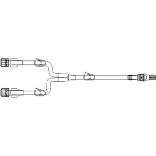 The ICU Medical B1490 is a 9-inch bifuse IV extension set designed to ensure safe and efficient delivery of medication to patients. This set comes with three clamps, two in white and one in blue, to provide secure control over the flow of medication. The rotating luer lock system ensures a secure and leak-proof connection to the IV line. This product is DEHP-free and latex-free, making it safe for use with patients who have latex allergies. Each case contains 50 sets, providing a ready supply for busy healthcare settings.