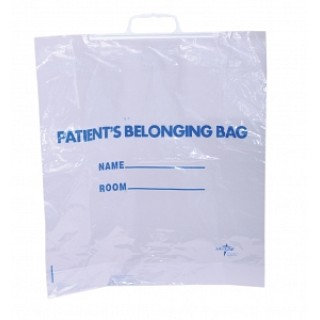 This product is a pack of 250 clear patient belonging bags, each equipped with a rigid handle for easy carrying. These bags are designed to securely hold a patient’s personal items.