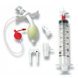 The ‘Smiths Medical 850170 – Tube Bivona Fome-Cuf Tracheostomy Kit LF Adult 7mm Ea’ is a comprehensive tracheostomy kit designed for adult use. It features a 7mm foam cuff and an 80mm silicone tube. The kit also includes a 15mm swivel connector, a disposable obturator, a 60ml syringe, a 3-way stopcock, and a sideport. For added convenience, a 15mm disconnect wedge and a trach-tie from Portex Bivona are also included. The tube is radiopaque, making it easy to detect in radiographic scans. This tracheostomy kit is sterile, ensuring it is safe for use.
